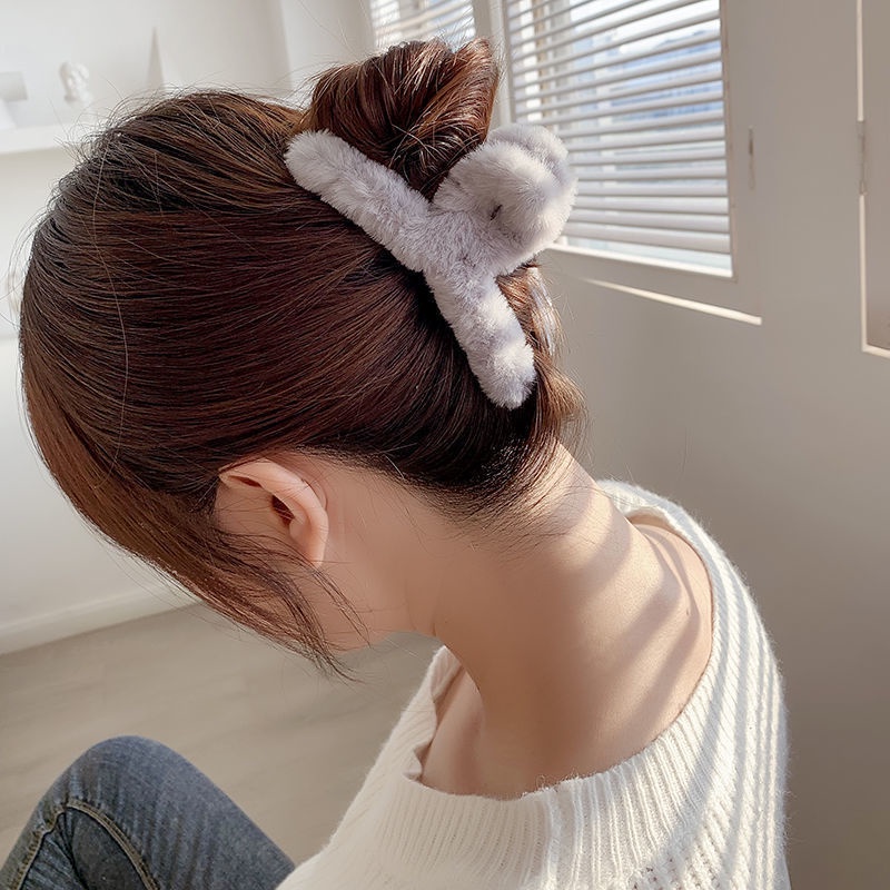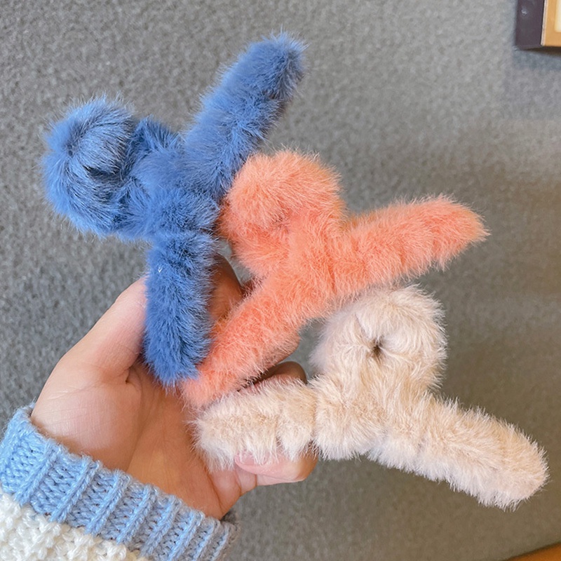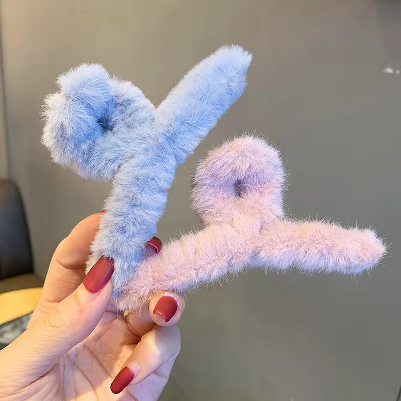 [Candy Color Faux Fur Hair Clips Clamps] [Plush Hair Claws Furry Shark Clip][French Back Head Hair Catch Barrette][Women Hair Crabs Clip Hair Accessories]