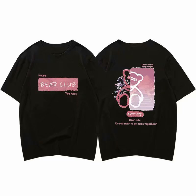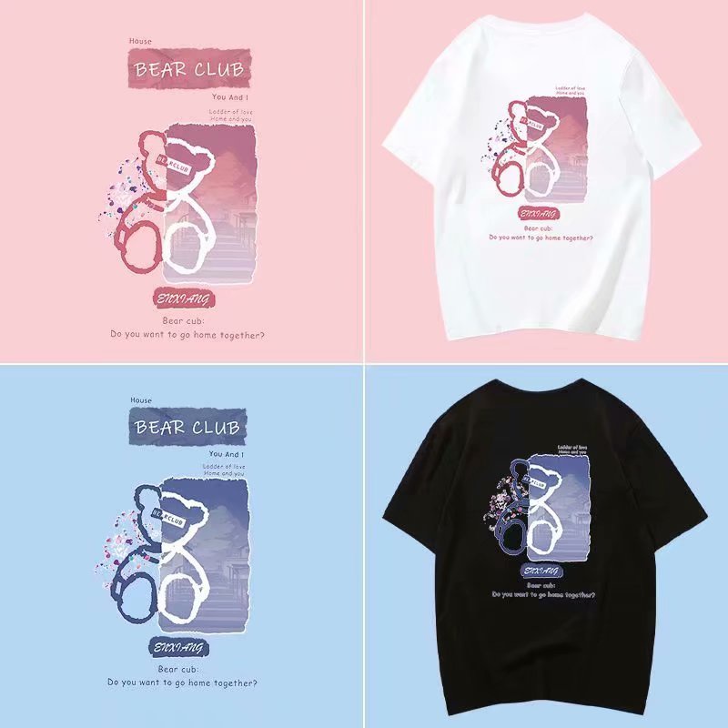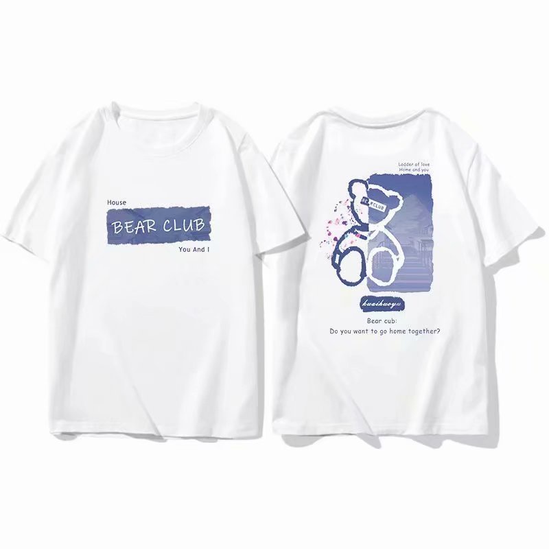 情侶短T恤 韓版小熊塗鴉印花五分袖寬鬆OVERSIZE短袖上衣【NLSD-D167】